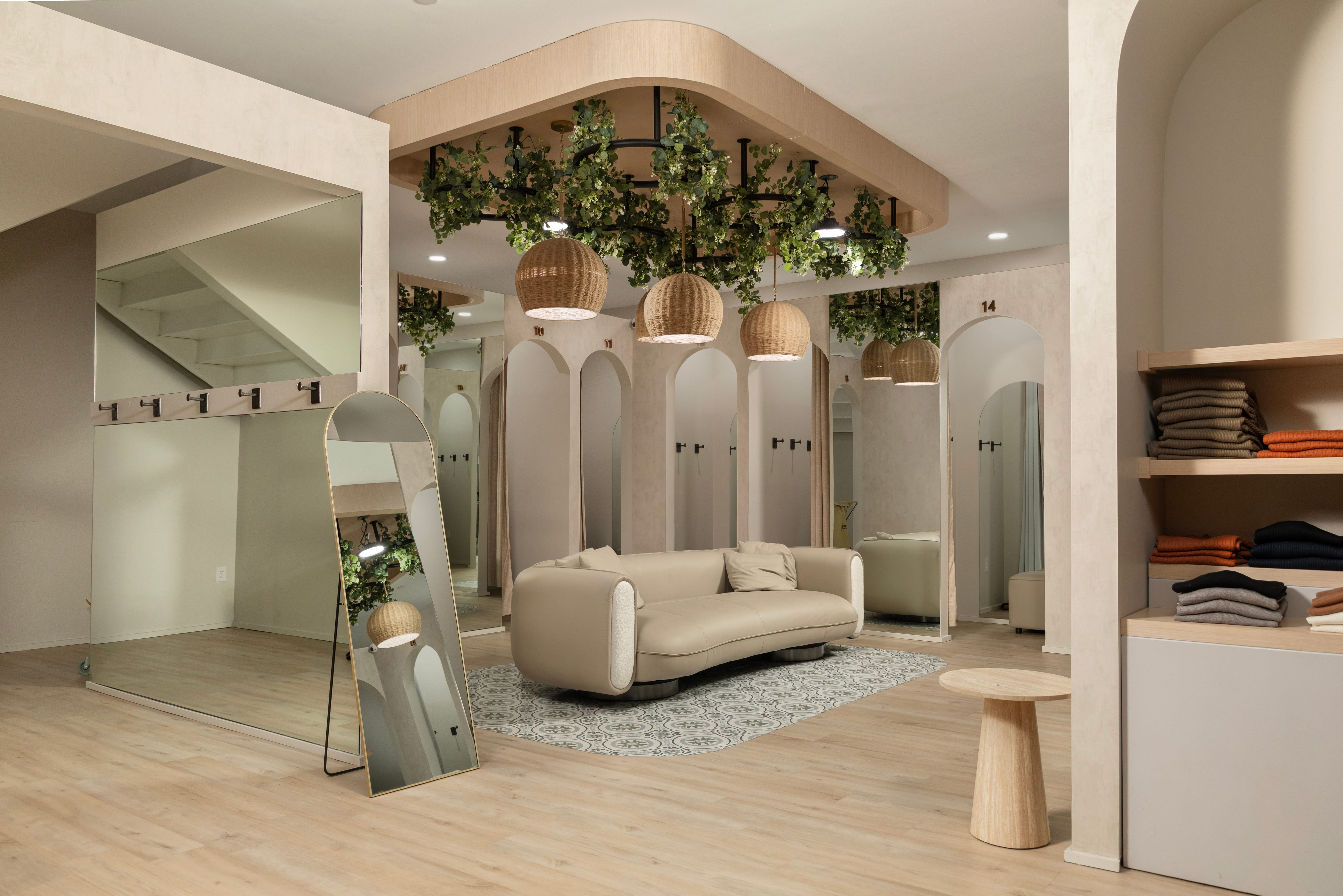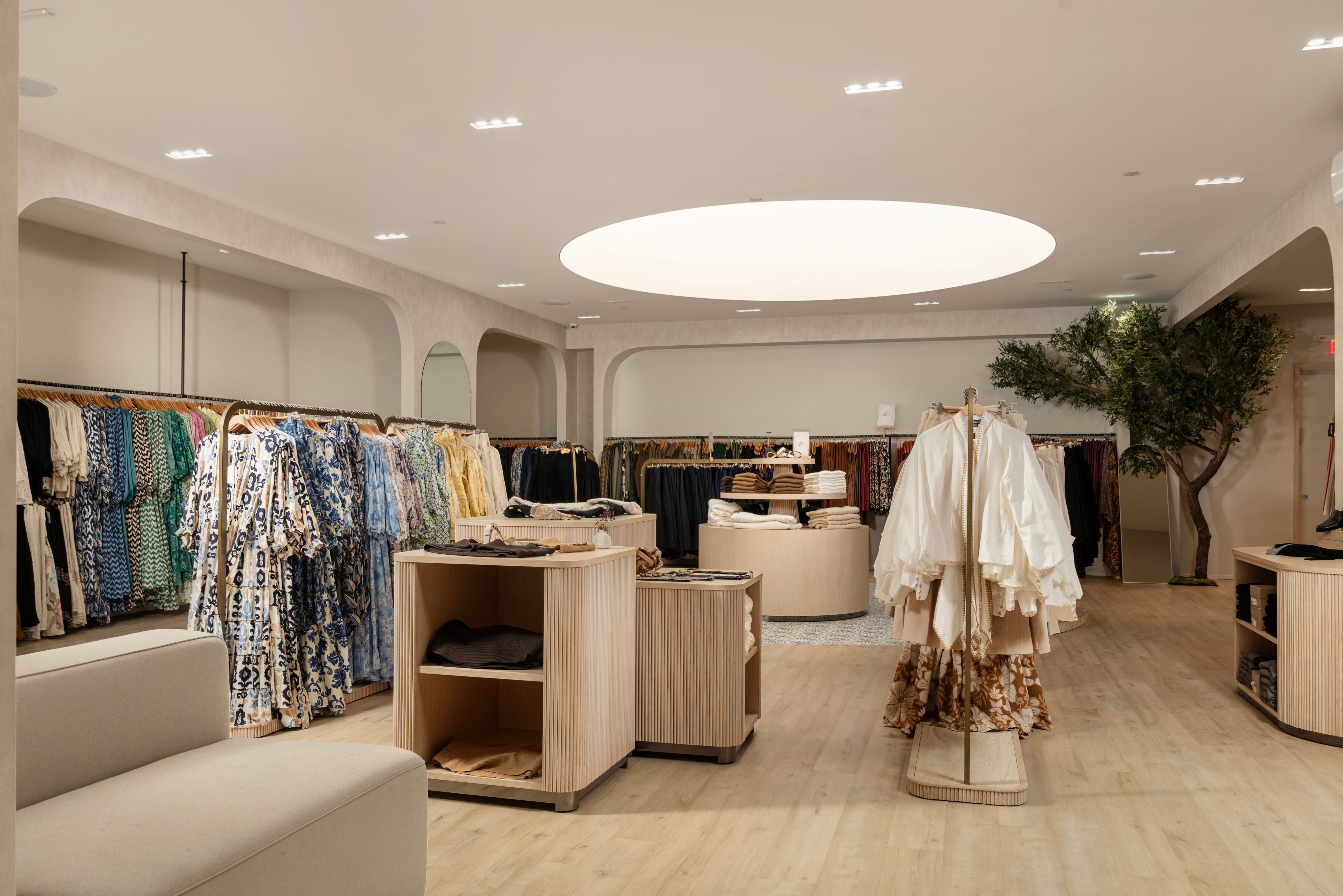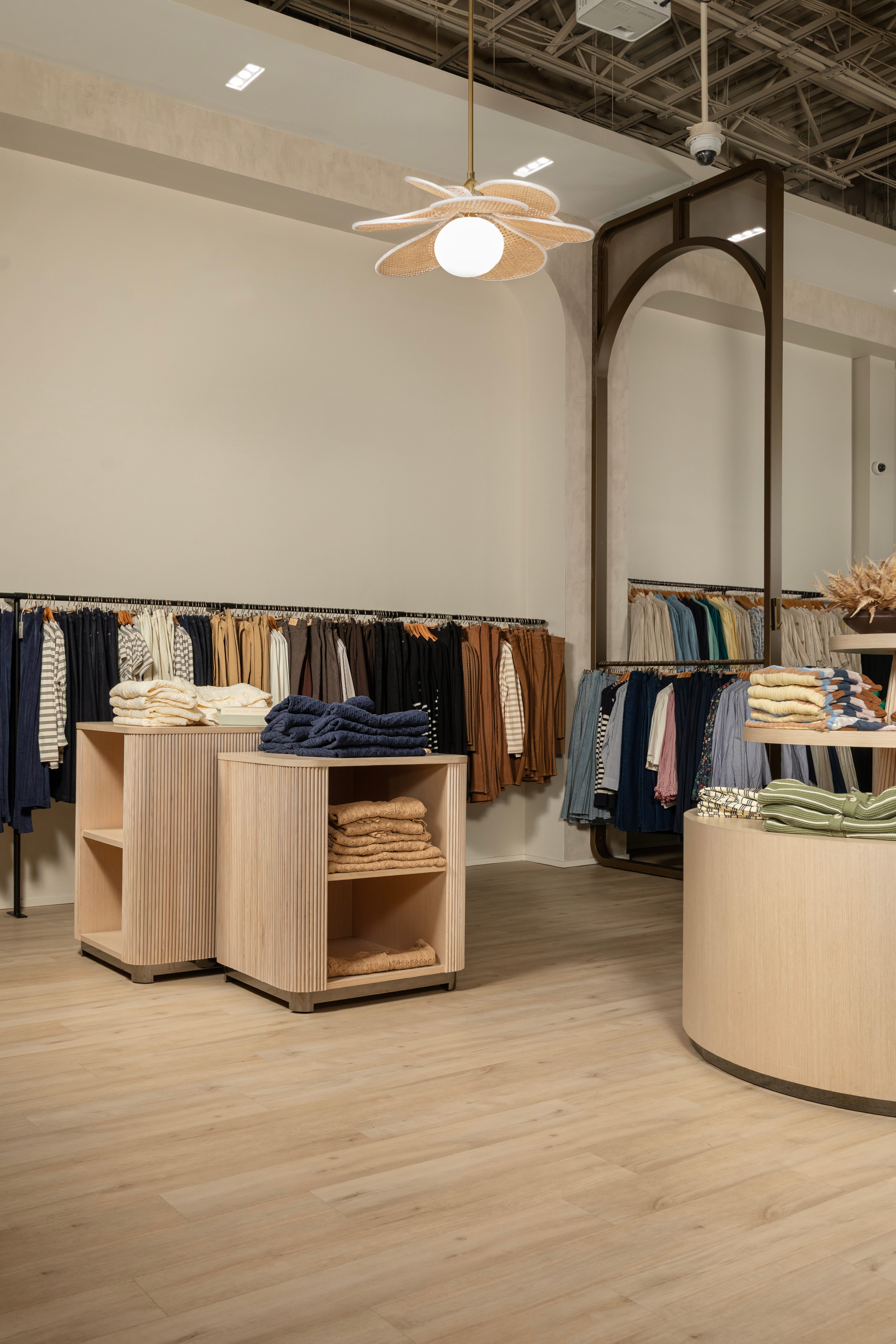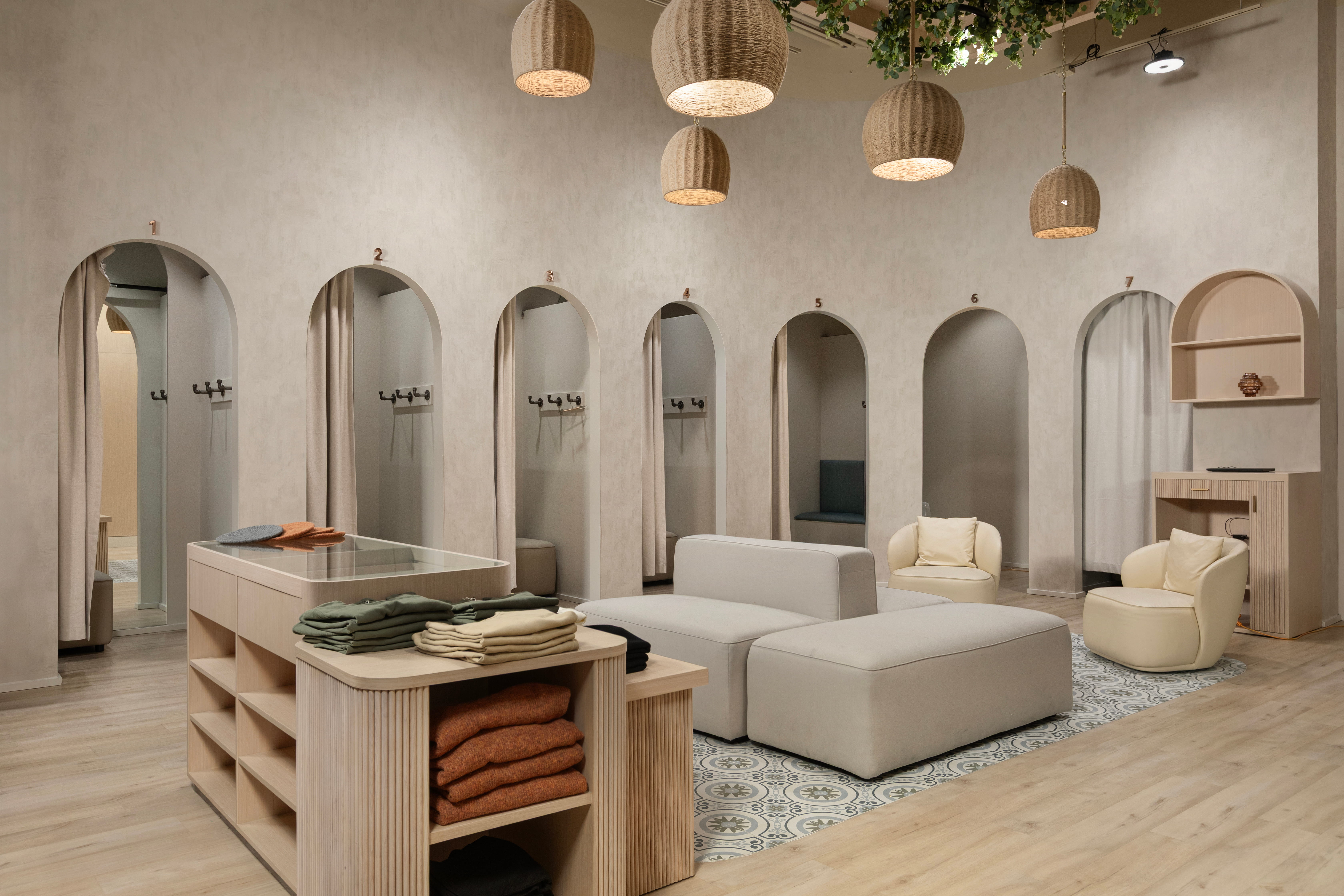 A retail environment designed around the feeling of arrival. Warm plaster tones, arched details, and natural materials come together to create a space that's as considered as the collection it holds.
